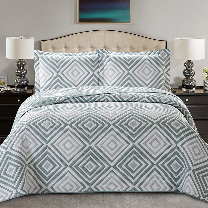 - Jacquard-ompeleet päiväpeitteeseen muodikkailla kuvioilla