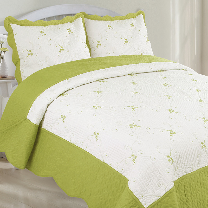 Kirjontapeitto liitetään keskiosaan ja ulkoreunoihin scollage-reunoilla. Kirjontaväri vastaa reunakankaan väriä. Puuvillatäytteellä tämä päiväpeite on tarpeeksi painava pitääkseen sinut lämpimänä, ja peitto on myös kevyt käytettäväksi kesällä. Kaikki värit ovat saatavilla.
